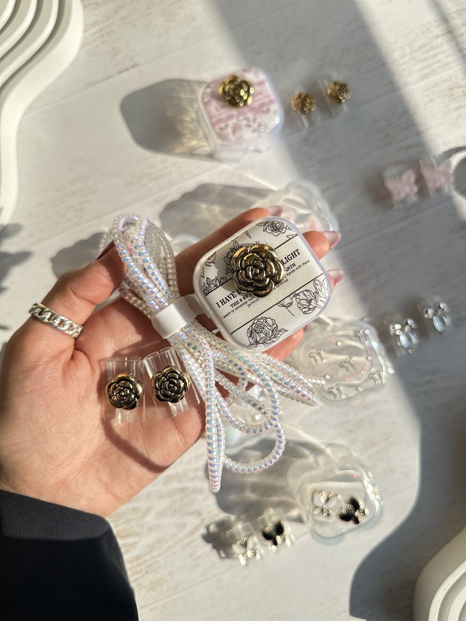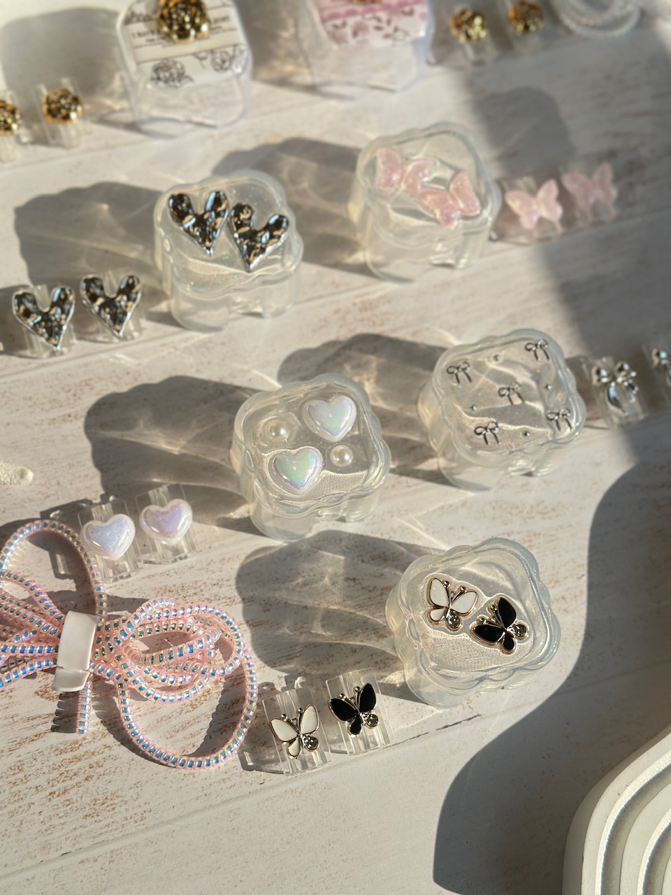 5-قلب هولوگرامی, 6-پاپیون اکلیلی, 1-گل طلایی زمینه کرم, 3-قلب دفرمه, 2-گل طلایی زمینه صورتی, 4-پروانه صورتی, 7-پروانه سفید مشکی