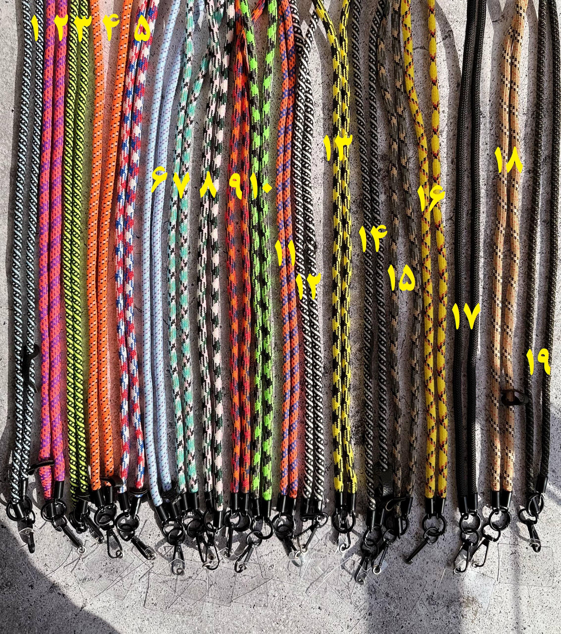9-لاین نارجی قرمز آبی, 7-لاین آبی مشکی سفید, 3-سبزمشکی, 4-نارنجی نقطه دار, 5-لاین آبی سفید قرمز, 8-لاین سبز سفید مشکی, 6-آبی نقطه دار, 11-نارنجی آبی نقطه دار, 12-مشکی سفید, 13- زرد مشکی, 14- مشکی طوسی, 15-کرم طوسی مشکی, 16-زرد قرمز مشکی, 10-لاین سبز مشکی طوسی, 1-آبی مشکی, 19مشکی شطرنجی, 2- صورتی بنفش, 17مشکی ساده, 18-کرم مشکی سفید