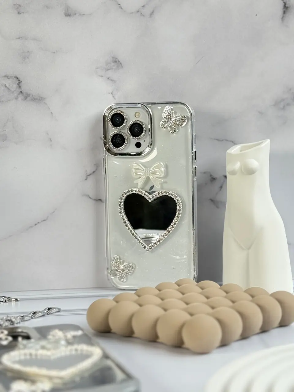 قاب شاینی قلب آینه ای با محافظ لنز رینگی نگینی (کدC1889)