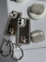 قاب Dior آینه ای دور نگین با آویز قلبی پاپیونی (کدC1989)