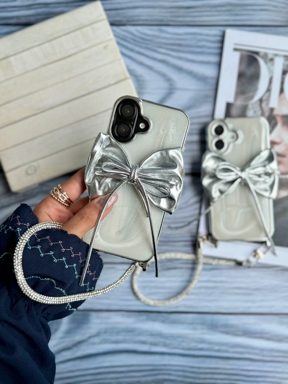 قاب پاپیون نقره ای با بند ژلاتینی (کدC2003)