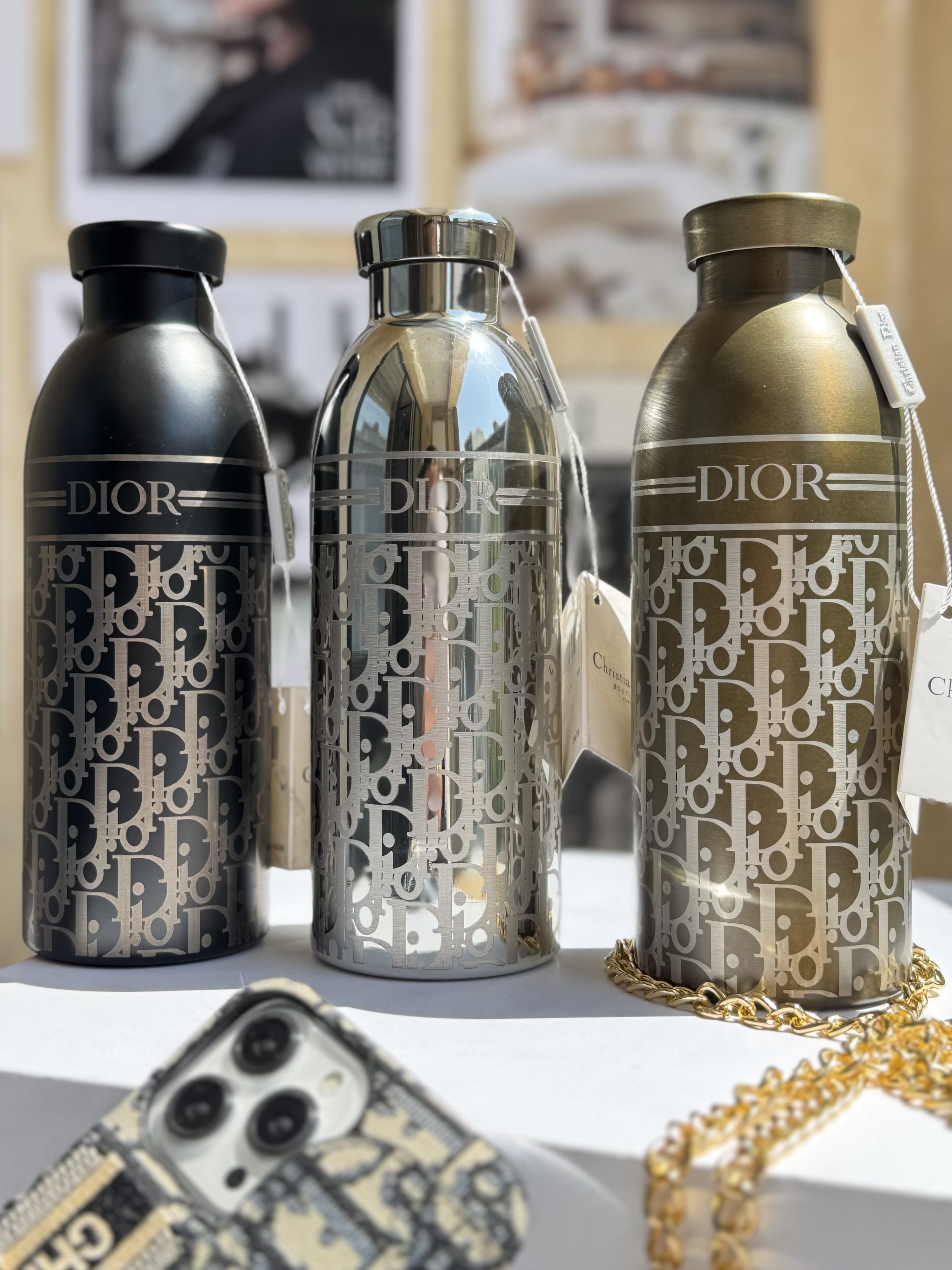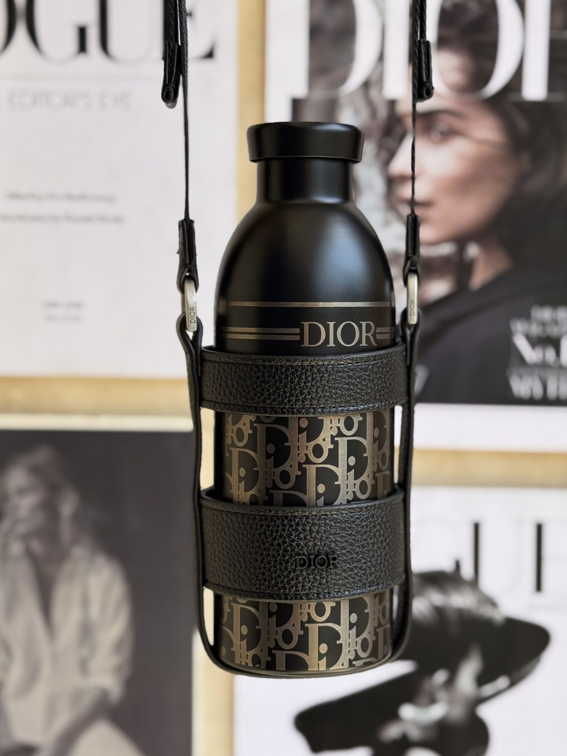 Dior Aqua Bottle with Shoulder/ StrapOff-White Grained Calfskin and Dior Oblique Stainless Steel